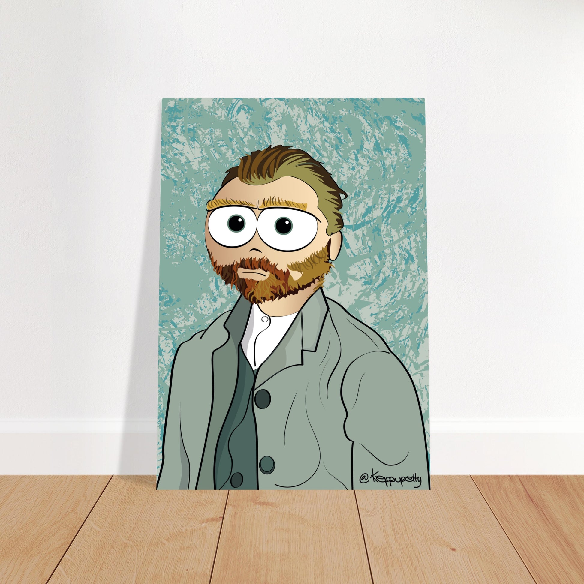 Per questo autoritratto di Van Gogh, ho nuovamente sfidato le mie convenzioni, specchiando gli occhioni di Keppu per la seconda volta nella mia galleria. Ho dedicato particolare attenzione alla barba e alle sopracciglia, elementi caratteristici del maestro, mentre lo sfondo vibrante in azzurro crea un'atmosfera di calma contemplativa.